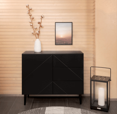 Hiipakka Vilja tv-taso ovilla, 200 cm. musta